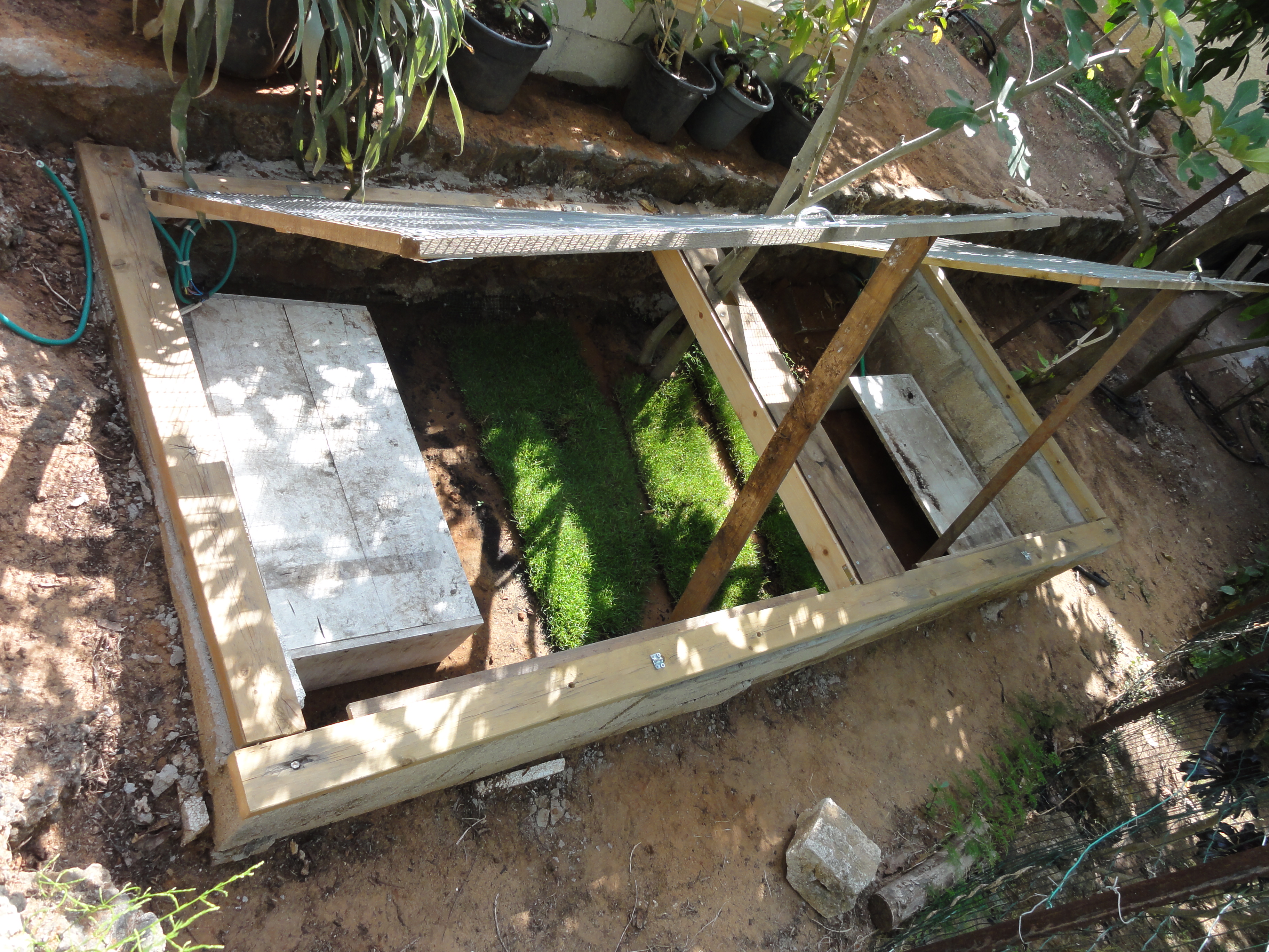 Each arena has ceramic heating pads below the shelters and a grassland for grazing, that was provided in addition to a the vegetables provided daily as a food source.
